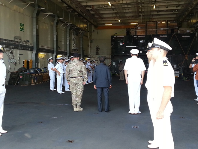 Khamiis, September 05, 2013 (HOL) — Madaxweynaha dowladda Somalia, Xasan Sheekh Maxamuud ayaa shalay meel ka baxsan xeebta Muqdisho wuxuu markab dagaal oo ay leedahay dowlada Nederland kana mid ah kuwa howlgalka la-dagaalanka burcad-badeedda u jooga Soomaaliya kula kulmay ergayga gaarka ah ee Midowga Yurub u jooga Soomaaliya, Michele Cervone d’Urso, taliyaha sare ee ciidmada badda Midowga Yurub, Admiral Bob Tarrant, madaxa hawlgalka dhismaha iyo tayeynta Midowga Yurub (EUCAP), Nestor, Etienne de Poncins iyo xubno kale.