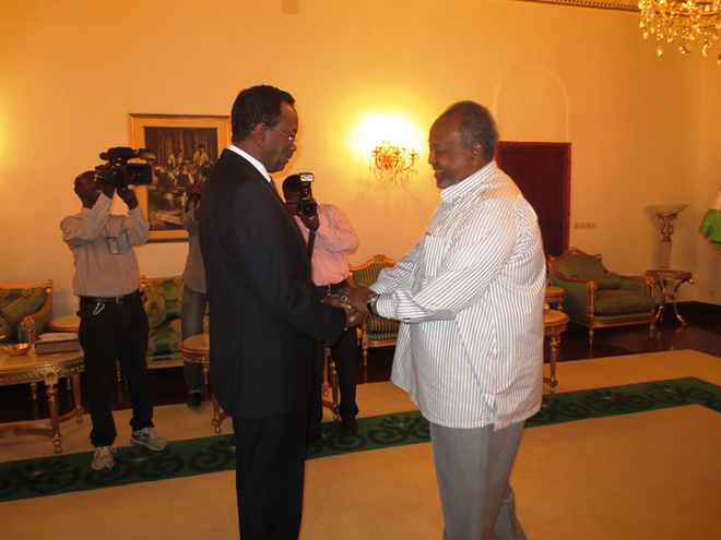 Madaxweynaha dalka Jabuuti ayaa ku ammaanay dowladda dadaalka ay ugu jirto bad-baadinta ummadda Soomaaliyeed, waxaa kaloo uu madaxweynuhu sheegay in dalkiisu uu sii xoojin doono xiriirka kala dhexeeya Soomaaliya iyo gacanta kaga aaddan xasilloonida dalka.