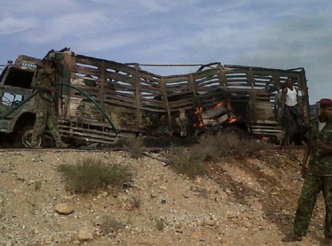 Arbaco, August 07, 2013 (HOL) — Dabley hubeysan ayaa xalay ku gubey inta u dhexeysa magaalada Boosaaso iyo tuulada Kala-bayr labo gaari oo nooca xamuulka qaada ee ay Soomaalidu (Candho-meydlaha) u taqaan ah.