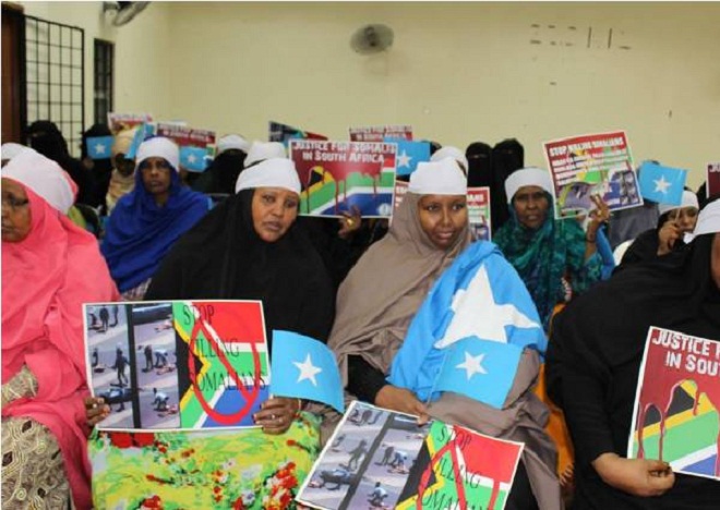 Kulankan ayaa waxaa goobjoog ka ahaa haween mayo-cad madaxa ku xirtay kuwaasoo xambaarsanaa boorar ay ku qoran yihiin: “Waa in la joojiyo dialka loo geysnayo Soomaalida Koonfur Afrika ku nool” iyo "Waa in Soomaalida Koonfur Afrika ay hesho cadaalad."