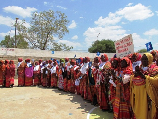 Jimco, Maarso 08, 2013 (HOL) — Munaasabad lagu maamuusayay Maalinta Haweenka Adduunka ee 8-da Maarso ayaa maanta lagu qabtay Degmada Jowhar ee xarunta Gobolka Shabellada dhexe, iyadoo haweenkii kulankaas ka qaybgalay ay wateen boorar ay ku qoran yihiin erayo ay uga soo horjeedaan dhibaatooyinka haweenka loo geysto.