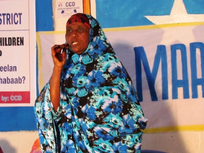 Waxaa kaloo munaasabadda hadal ka jeedisay guddoomiyaha haweenka ee gobolka Shabellada dhexe, Sacdiyo Maxamed Burus iyadoo haweenku kula dardaarantay inay dhexda u xirtaan sidii carruurtooda ay ugu wacyi-gelin lahaayeen dagaallada, isla markaana ay qayb ka qaataan ammaanka iyo xasiloonida dalka oo dhan, waxayna ku ammaantay hay'adda CCD.