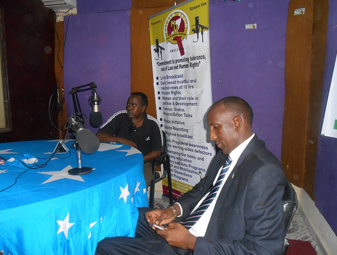 Khamiis, Abriil 03, 2014 (HOL) — Wasiirka warfaafinta xukuumadda Soomaaliya, Mustaf Shiikh Cali Dhuxulow ayaa ka qaybgalay munaasbadda sannad-guuraddii labaad ee kasoo wareegtay markii la asaasay Dalsan Radio.