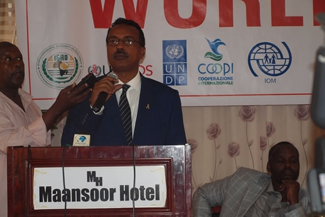 “Inkastoo heerka uu gaadhsiisan yahay xanunkan HIV/AIDS ee dalkeena uu aad u hoosayso marka loo eego wadamad aan jaarka nahay, qiyaasta illaa hadda ka soo baxday xog ururin laga qaaday hooyooyinka uurlayda ah iyo dadka u nugul xanuunka waxay muujinaysa in uu heerka xanuunka HIV/AIDS ee Somalilnad gaadhsiisan yahay 1.1% ”ayuu hadalkiisa raaciyey.