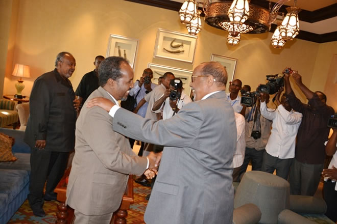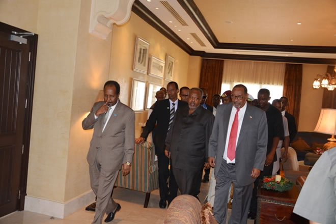 Sabti, December 20, 2014 (HOL) — Madaxweynaha dalka Jabuuti Ismaaciil Cumar Geelle ayaa kulan qado ah isugu keenay labadda madaxweyne ee dowladda Soomaaliya Xasan Sh. Maxamuud iyo Somaliland. Axmed Maxamed Siilaanyo.