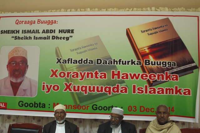 Khamiis, December 04, 2014 (HOL) — Mmagaalada Hargeysa ayaaa xalay lagu soo ban-dhigay buug ka hadlaya xoreynta haweenka iyo xuquuqda ay islaamka ku leeyihiin, kaasoo uu qoray Sh. Ismaaciil Cabdi Hurre (Sheekh Ismaaciil Dheeg).