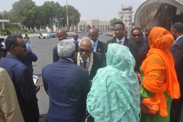 Wafdiga ayaa waxaa garoonka diyaaradaha Jabuuti kusoo dhaweeyey xubno uu ka mid ahaa guddoomiyaha baarlamaanka Jabuuti, ku xigeenkiisa iyo xildhibaanno ka tirsan baarlamaanka Jabuuti.
