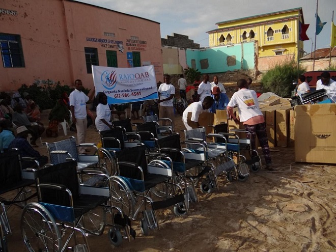 Jimco, June 27, 2014 (HOL) — Qaar ka mid ah cuyaamiinta ku nool magaalada Muqdisho ayaa loo qaybiyay Khamiistii shalay ahayd kuraasta ay curyaamiinta ku socdaan oo ay ku deeqeen dad Soomaaliyeed oo musxiniin ah oo ku nool dalka Mareykanka gaar ahaan Maxamed Abshir oo madax ka ah hay'adda RajoQab foundation. Maxamed Abshir oo isaguba ku curyaamoobay shil mooto uu kula galay sannadkii 2000.
