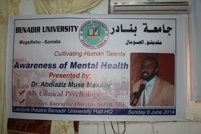 Guddoomiyaha jaamacadda Banaadir, Dr. C/llaahi Sheekh Xuseen Bushkuleeti oo isna halkaas ka hadlay ayaa u mahad-celiyey Dr. C/casiis Muuse Maaxaay, isagoo xusay in casharrada noocan ah loo baahan yahay in la kordhiyo maadaama Somalia ay ka mid tahay dalalka ay aafeeyeen cudurrada ku dhaca dhimirka.