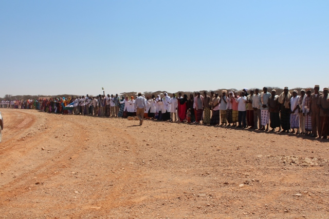 Dadweyne boqollaal gaaraya oo ruxayey calammo iyo caleemo qoyan ayaa Madaxweynaha iyo wafdigiisa si diirran usoo dhoweeyey. Madaxweynaha oo dadkii soo dhoweeyey la hadlayey ayaa sheegay in dowladdiisu ay xoogga saari doonto degmooyinka laamiga ka baxsan, maadaama badi dadka reer Puntland ay ku nool yihiin deegaanada jidka dheer ee laamiga ah ka durugsan.