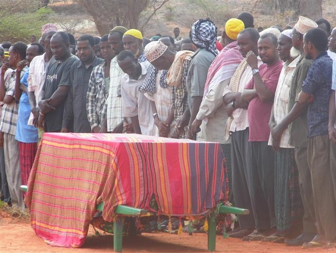 Talaado, Maarso 25, 2014 (HOL) — Qubuuraha Baar-caleen oo ku yaalla duleedka galbeed ee magaalada Kismaayo ayaa maanta lagu aasay AUN Meydka Ugaas Maxamad Xusen Hafoow, kaasoo shalay gelinkii danbe ay kooxo hubeeysan ku toogteen afaafka hore ee Masjid uu kusoo tukaday salaadda Casar.