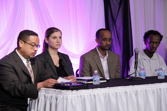 Talaado, May 13, 2014 (HOL) — Kulan lagu taageerayay sharciga fududeynta xawaaladaha Soomaaliya oo ay ka soo qeyb galeen Congressman Keith Ellison iyo Jilaaga Soomaaliyeed ee Barqad Cabdi ayaa maanta ka dhacay magaaladda Minneapolis ee gobolka Minnesota.