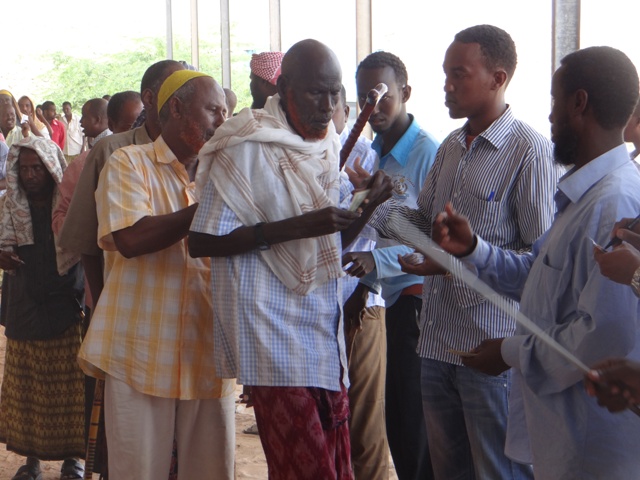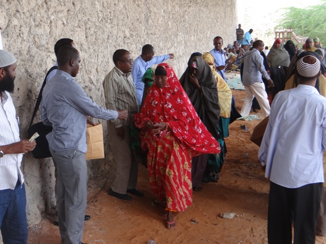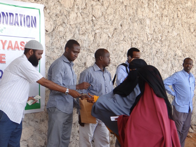 Arbaco, May 14, 2014 (HOL) — Shirkadda Isgaarsiinta Hormuud qaybteeda gar-gaarka ee Hormuud Foundation ayaa maanta deeq lacageed u qaybisay qaybtii labaad qoysas barakacayaal ah oo ku sugnaa deegaanka Ceelasha Biyaha ee duleedka Muqdisho.