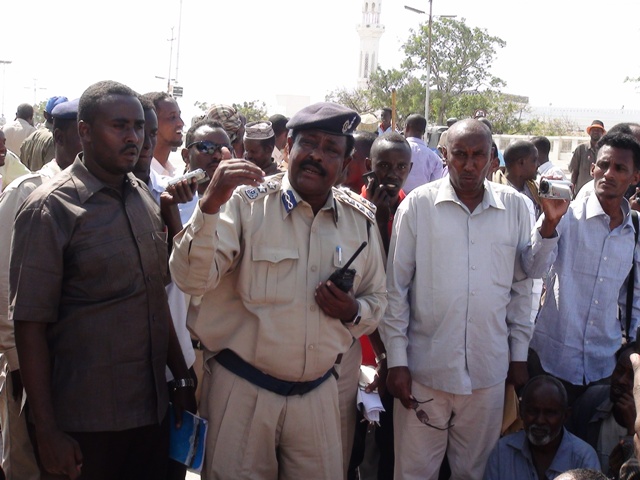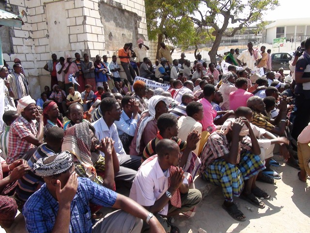 Talaado, September 23, 2014 (HOL) — Boqollaal ka tirsan xoogsatada dekedda weyn ee Muqdisho, xubinna ka ah isu-tagga ururka shaqaalaha Soomaaliyeed ee SCTU ayaa maanta dibadbax ka dhigay waddooyinka gala dekedda weyn ee Muqdisho illaa isgoyska Sayidka ee xarunta baarlamaanka Soomaaliya ku dhow, kuwaasoo watay boorar ay ku qoranaa erayo Afafka Soomaaliga iyo Ingiriiska ka koobnaa.