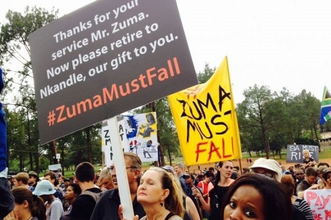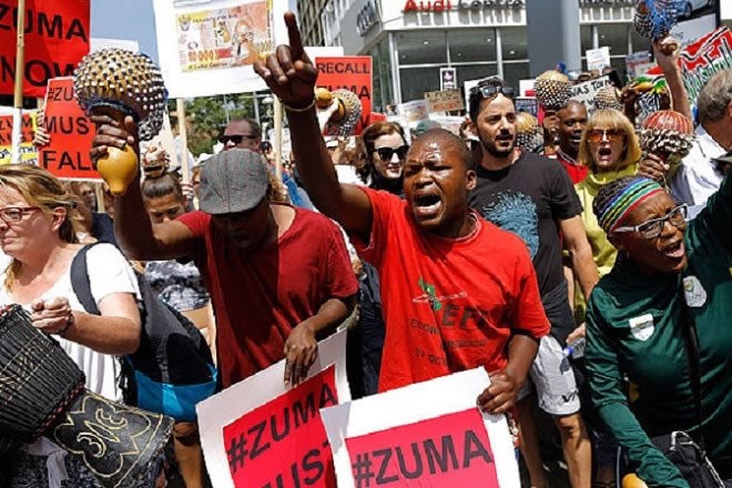 Arbaco, December 16, 2015 (HOL) — Kumanmaan shacab ah ayaa maanta dibadbaxyo ka dhigaya dalka Koonfur Afrika, kuwaasoo dalbanaya inuu madaxweyne, Jacob Zuma xilka ka dago, kaddib markii uu dhowr jeer kala badalay wasiirka dhaqaalaha, taasoo jah-wareer ku keentay dhaqaalaha dalkaas.