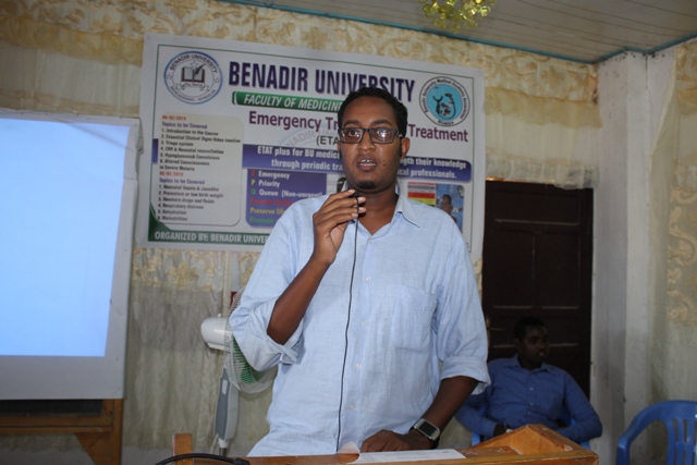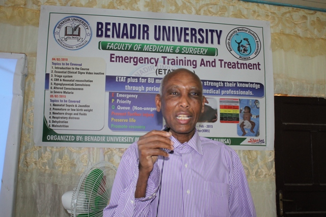 Khamiis, Feberaayo 05, 2015 (HOL) — Xarunta Jaamacadda Banaadir ee Muqdisho ayaa waxaa shalay gelinkii-dambe ka furmay tababar ku saabsan daweynta deg-degga ah (Emergency Training and Treatment) oo loo qabtay qaar ka mid ah ardayda kuliyadda caafimaadka ee Jaamacadda dhigta iyo kuwii horay uga qalin-jabiyay ee dhaqaatiirta noqday.