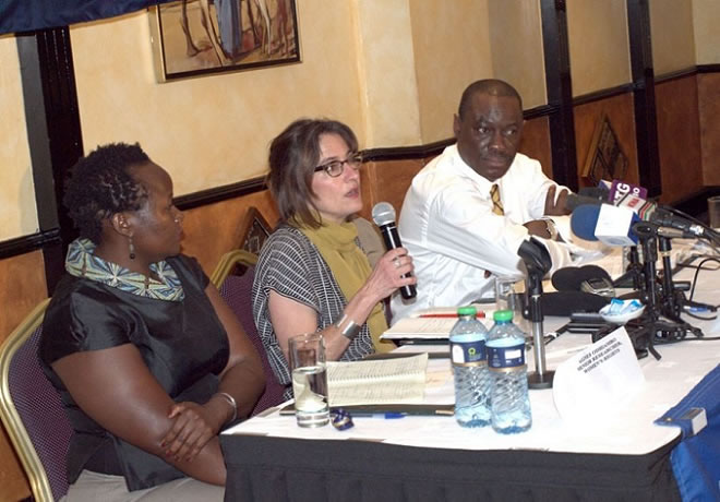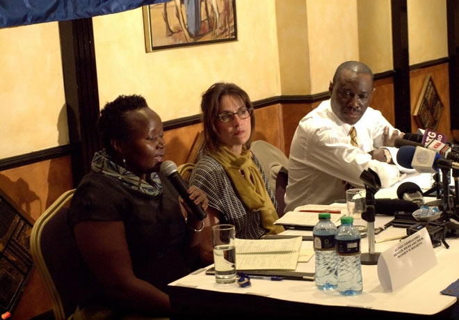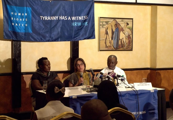 Shir jaraa'id oo ay si wadajir ah ugu qabteen magaalada Nairobi ee xarunta Kenya, Leslie Lefkow oo ah Agaasime ku-xigeenka waaxda Afrika ee HWR. Babatunde Olugboji oo isna ah Agaasime ku xigeenka Mashaariicda Hay'adaas iyo Agnes Odhiambo oo dhanka Xaquuqda haweenka u qaabilsan HRW, ayaa waxey ku soo bandhigeen warbixintoodii sanad'laha aheyd oo ku saabsan tacaddiyada sanadkii la soo dhaafay ee 2014-kii ka dhacay wadamo ku yaallo qaarada africa, iyadoona goobta ay ku sugneyd Laetitia Bader oo Human Rights Watch u qaabilsan wadanka Somalia.