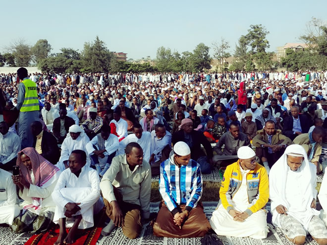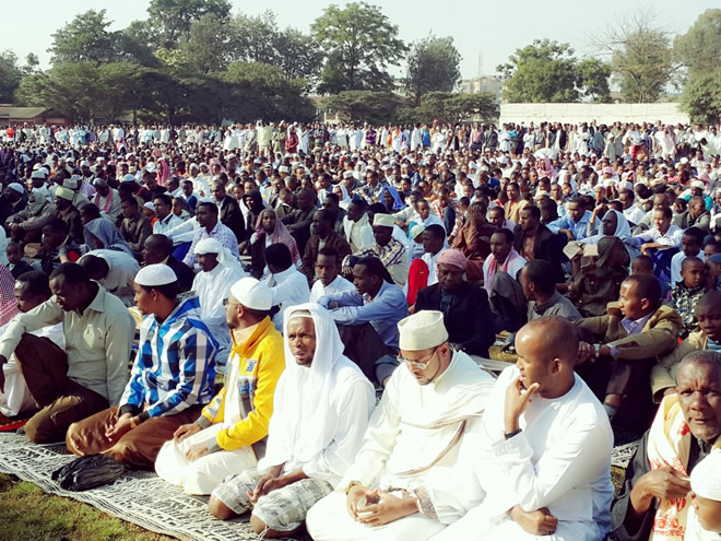 Garoonka Salaada Ciida ee magaalada Gaarisa ee Gobalka Waqooyi-bari ee Kenya, waxaa isagana saaka iskugu soo baxay dad weyne aad u tiro badnaa oo halkaas ku wada tukaday Salaada Ciida.