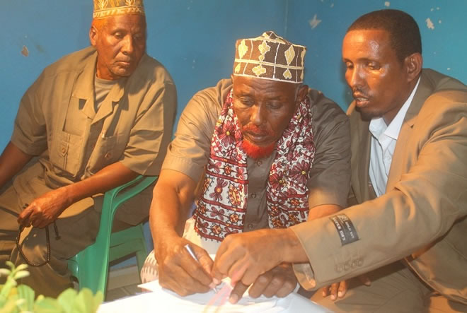 Khamiis, Maarso 05, 2015 (HOL) — Labadii dhinac ee ay dagaalladu ku dhex-marayeen degmada Guriceel ee gobolka Galguduud ayaa si rasmi ah u kala saxiixday heshiis KMG ah oo ka kooban shan qodob, kaasoo gundhiggiisu yahay soo celinta nabadda iyo in la kala qaado ciidamada dagaalku dhexmaray, dadkuna ay guryahoodii dib ugu soo laabtaan.