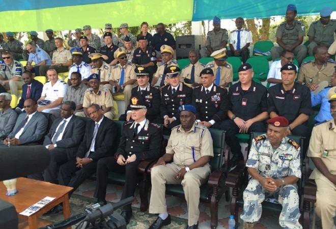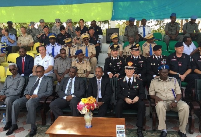 Khamiis, May 21, 2015 (HOL) — Ciidammo ka tirsan kuwa booliska Somalia ayaa maanta tababar loogu soo xiray magaalada Jabuuti, iyadoo munaasabaddii xirtaanka tababarkan ay ka qayb-galeen wasiirro ka kala socda dalalka Somalia iyo Jabuuti, waxaana ciidamadan ay tababar qaadanayeen muddo saddex bilood ah.