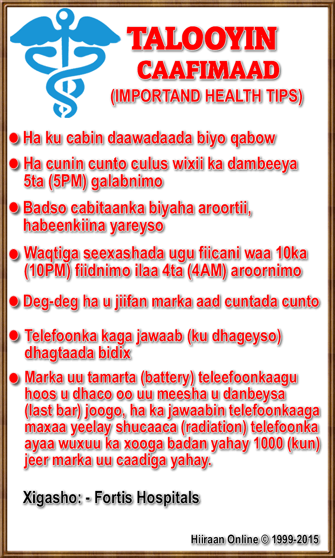 TALOOYIN CAAFIMAAD (IMPORTANT HEALTH TIPS)