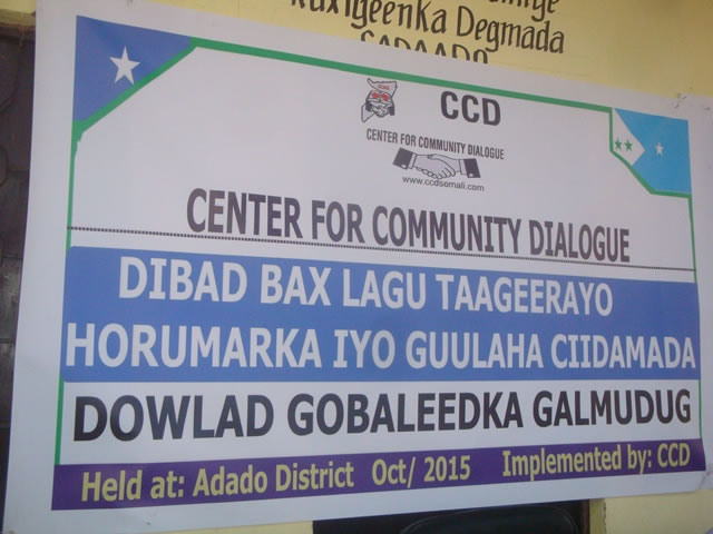 Qaban-qaabada dibadbaxan ayaa waxaa gacan kageysatay hay’adda CCD oo fadhigeedu yahay Muqdisho, iyadoo dibadbaxa ay ka qaybgalay mas’uuliyiinta maamulka Galmudug, oo ay ku jireen wasiirro, xildhibaanno, taliyaha guutada 21-aad ee ciidamada xoogga dalka, taliyaha booliska Cadaado, mas’uuliyiin ka tirsan maamulka Cadaado, waxgaradka degmada, urrurada haweenka, midka dhallinyarada iyo dadweyne aad u fara badan oo ka kala yimid lixda xaafadood ee degmada Cadaado ay ka kooban tahay.
