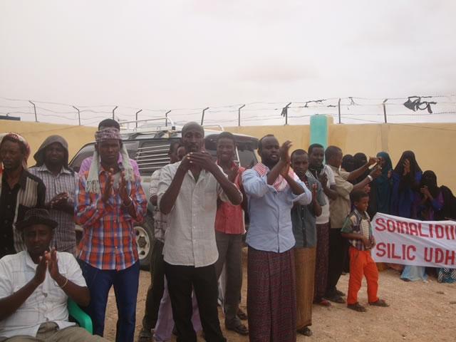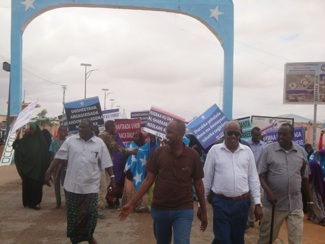 Shacabka mudaaharaadka dhigayay oo watay boorar ay ku qornaayeen hal-ku-dhigyo kala duwan oo ka dhan ah ururka Al-shabaab ayaa socdaal dheer kusoo maray qaybo ka mid ah waddooyinka waaweyn ee degmada Cadaado kuwaasoo isugu soo ururay xarunta degmada Cadaado.