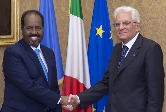 Jimco, September 04, 2015 (HOL) — Madaxweynaha Soomaaliya, Xasan Sh. Maxamuud iyo Madaxweynaha Talyaaniga Sergio Mattarella ayaa maanta Kulan ku yeeshay Xarunta Madaxtooyada Talyaaniga ee Magaalada Rome.