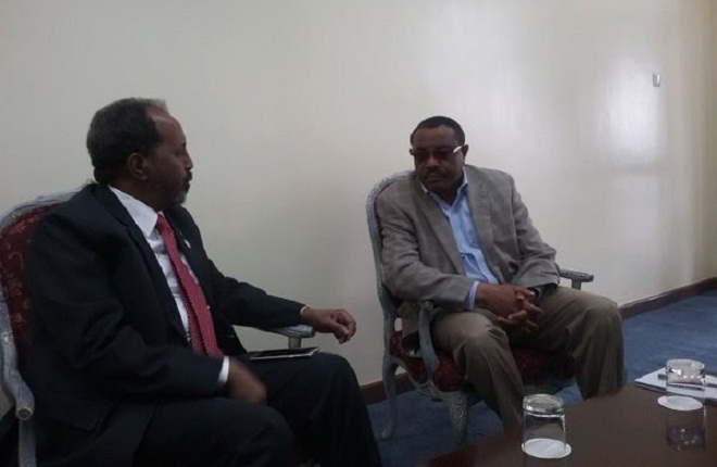 Axad, Abriil 17, 2016 (HOL) — Madaxweynaha Somalia, Xasan Sheekh Maxamuud iyo Ra’iisul Wasaaraha Itoobiya, Hailemariam Desalegn ayaa maanta kulan ay kaga hadleen iskaashiga labada dal ku yeeshay magaalada Bahir-Dar ee dalka Itoobiya.