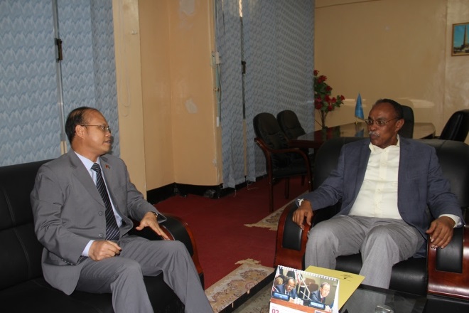 Axad, Maarso 20, 2016 (HOL) — Ku-simaha RW Somalia, isla markaana ah ahna wasiirka Cadaaladda, C/laahi Axmed Jaamac [Ilka-Jiir], ayaa Maanta la kulmay Safiirka Shiinaha ee Somalia, Wei Hongtian oo Warsame Geel-jire loo yaqaano. Iyagoo kawada hadlay xoojinta xiriirka labada dalka iyo sidii Dowaldda Shiinuhu ay taageero uga geysan lahayd Abaaraha ka jira qaybo ka mid ah gobollada dalka.