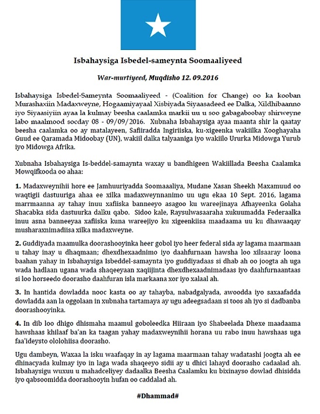 Isbahaysiga Isbedel-sameynta Soomaaliyeed [Coalition for Change] oo ka