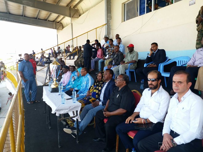 Khamiis, Augusto, 03, 2017 (HOL) -Ra’iisul wasaare ku-xigeenka dalka, Wasiirka Dhallinyarada iyo Ciyaaraha, Wasiir ku-xigeenka dekedaha, guddoomiyaha xiriirka kubadda cagta Soomaaliyeed, guddoomiyeyayaasha, xiriirada kale ee ciyaaraha iyo masuuliyiin kale ayaa shalay ka qeyb-galay munaasabad abaalmarinno lagu guddoonsiinayay kooxaha kaalmaha hore ka galay horyaalka heerka koowaad ee kubadda cagta Soomaaliya.