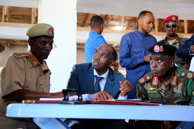 Isniin, Augusto, 07, 2017 (HOL)-Ra’iisul Wasaaraha xukuumadda Soomaaliya Mudane Xasan Cali Khayre oo uu weheliyo taliyaha ciidanka xooga dalka Soomaaliya sareeyo gaas Axmed Maxamed Jimcaal (Cirfiid) ayaa casar liiqii shalay booqday xarunta kaydka raashinka ee ciidanka Soomaaliya.
