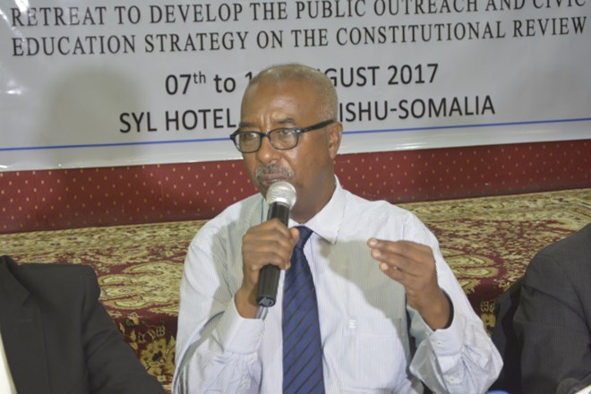 Isniin, Augusto, 07, 2017 (HOL) –Wasiirka Wasaaradda Arrimaha Dastuurka ee Xukuumadda Federaalka Soomaaliya AVV Cabdiraxmaan Xoosh Jibriil ayaa maanta Muqdisho ka furay shir afar maalin socon doona oo lagu diyaarinayo Istiraatiijiyadda Waxbarashada Madaniga, Wacyigelinta Dadweynaha, iyo Latashiyada Dadweynaha ee dib-u-eegista Dastuurka.