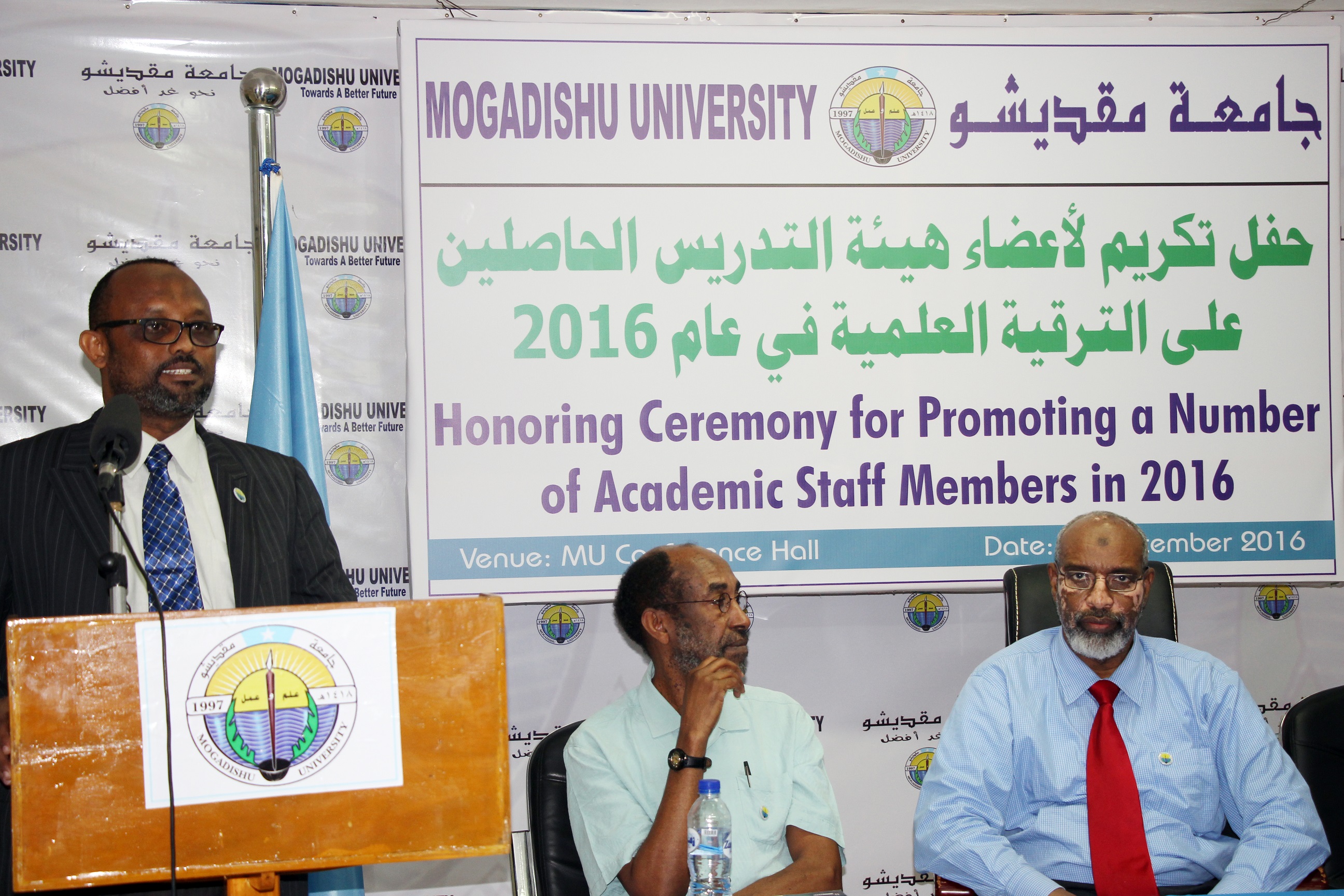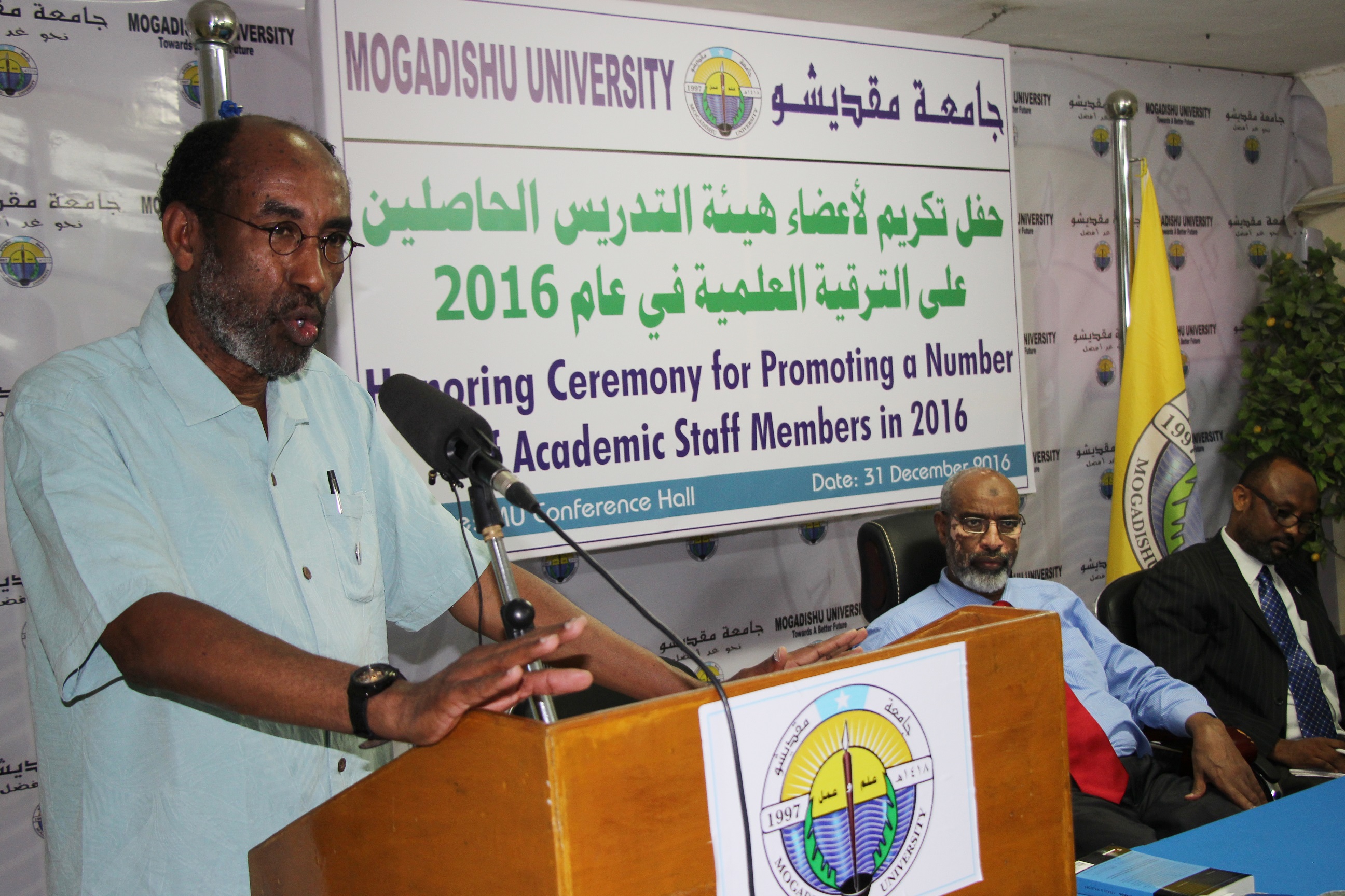 Xafladda waxaa ka soo qayb galay gudoomiyihii hore ee Jaamacadda Muqdisho Professor Cali Sheekh Axmed iyo Professor Cabdi Ismaciil Samatar oo labaduba ka tirsan Board-ka Jaamacadda (BOAD OF TRUSTEE) hormoodyada kuliyadaha jaamacadda maamulka iyo macalimiinta Jaamacadda, aqoon yahano badan oo cilmibaarayaal soomaaliyeed ah iyo marti sharaf kala duwan.