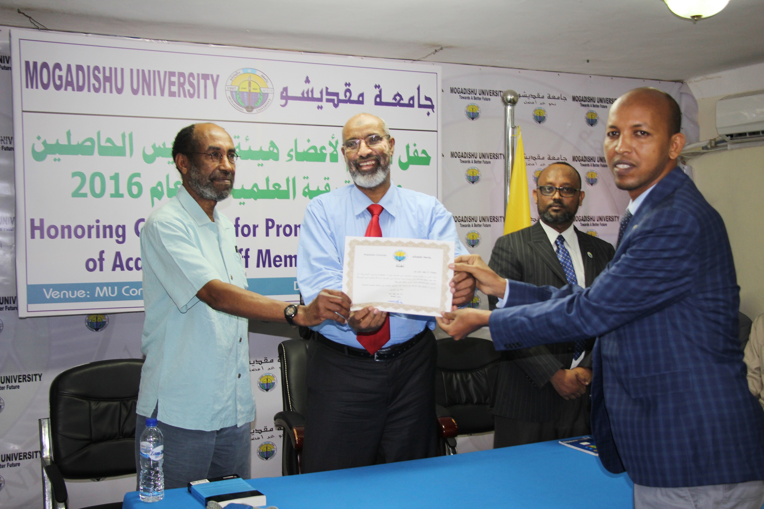 ASSOCIATE PROFESSOR iyaga oo u dalacay darajada PROFESSOR halka 6 lixda macalin ee kalana ay ka dalaceen darajada cilmiyeed ee ASSISTANT PROFESSOR iyaga oo u dalacay darajada ASSOCIATE PROFESSOR.