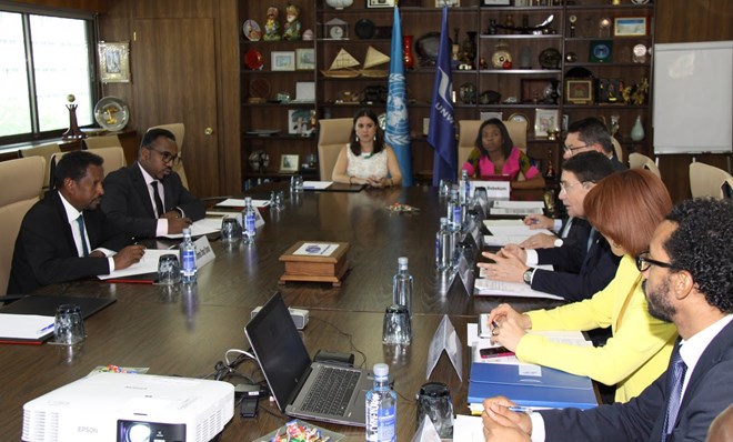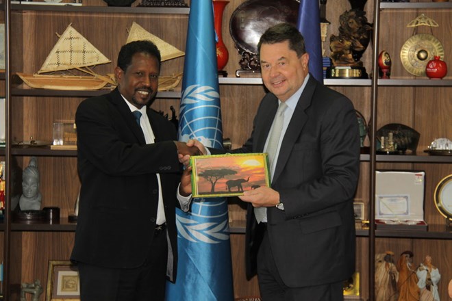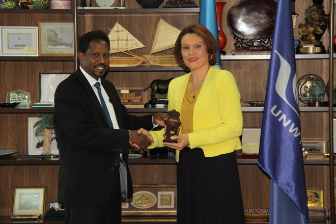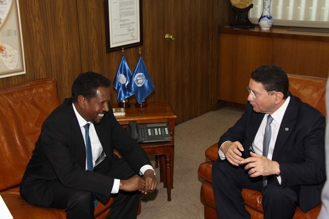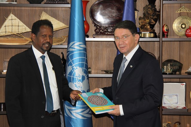 Sabti, June, 17, 2017 (HOL) – Wasiirka Warfaafinta, Dhaqanka & Dalxiiska Mudane Cabdiraxmaan Cumar Cismaan (Eng. Yarisow) oo ku sugan magaalada Madrid ee dalka Spain ayaa shalay kulan la qaatay Mr Taleb D. Refai, Xoghayaha Guud ee Hay’ada Dalxiiska Adduunka (World Tourism Organization) oo fadhigoodu yahay Madrid.