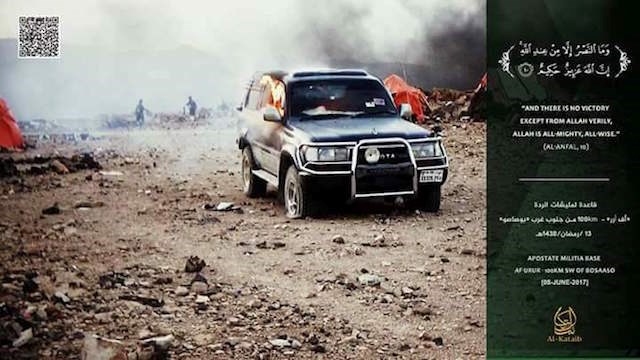 Sabti, June, 17, 2017 (HOL) –Xarakadda Al Shabaab ayaa soo bandhigay sawirada weerarkii todobaadkii hore ay ku qaadeen saldhiga ciidamada military-gga maamulka Puntland ee degaanka Af-Urur ee gobolka Bari.