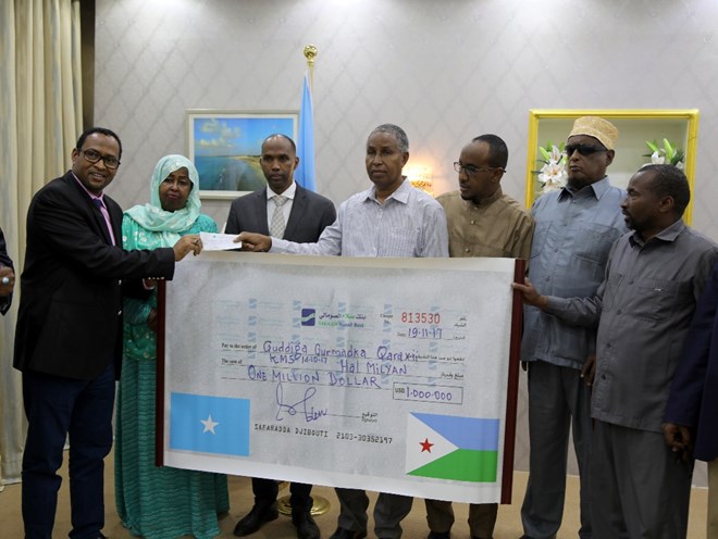 Talaado, November, 21, 2017 (HOL)- Dowladda Jabuuti ayaa lacag dhan $1 million oo dollar ugu deeqday dadkii ay wax yeelladu ka soo gaartay qaraxii 14kii bishii October ee sanadkan ka dhacay Isgoyska Zoobe ee magaalada Muqdisho.