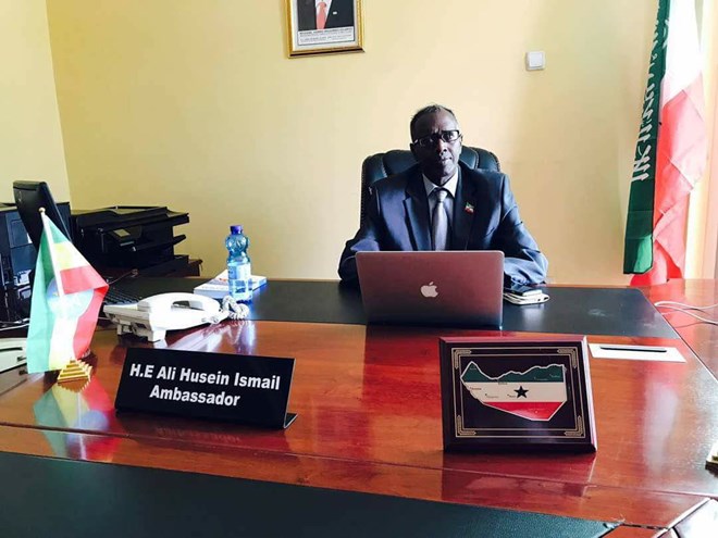 Wakiilka Somaliland ku leedahay Itoobiya Amb. Cali Shoombe ayaa si kooban uga hadlay dabkaasi qabsaday xafiiska, islamarkaana ku gaabsaday in labaarayo sababta dhalisay dabkaasi xafiiska qaybo ka mid ah.