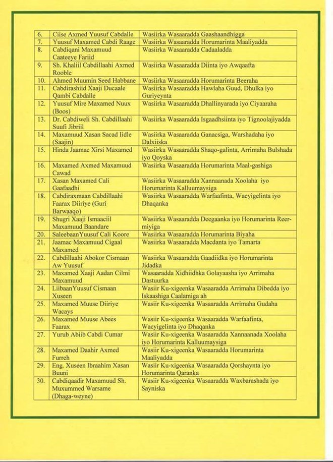 Akhriso Magacyada xubnaha golaha wasiiradda cusub :