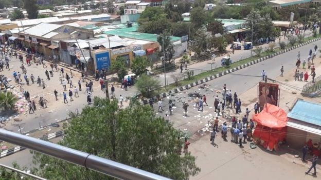 Magaalada waxaa ka jirta xaalad kacsanaan ah oo dadka ayaa dariiqyada isugu soo baxay iyada oo ku dhawaaqaya erayo ka dhan ah dowladda dhexe ee Itoobiya, waxaana la arkayay dadka qaar oo dab qabadsiinaya calanka Itoobiya.