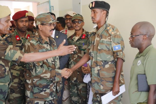 Talaado, Maarso, 27, 2018 (HOL) - Madaxweynaha Soomaaliya Maxamed Cabdullaahi Farmaajo ayaa xarunta wasaaradda Gaashaandhigga kula kulmay Saraakiisha dhalinyarada ee loo magacaabay hoggaanada ciidanka militariga.