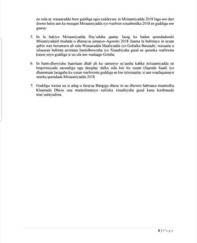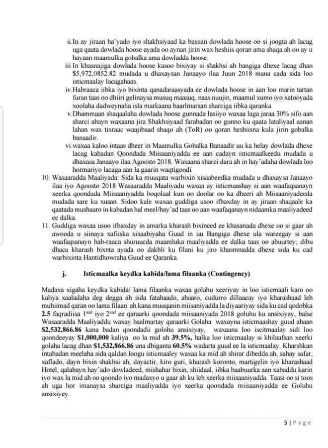 newsinside Warbixin dheer oo uu guddigu soo saaray ayaa looga hadlay wax is daba marin iyo in si qaldan loo maamulay miisaaniyadda dalka laga soo bilaabo Janaayo illaa Agosto.