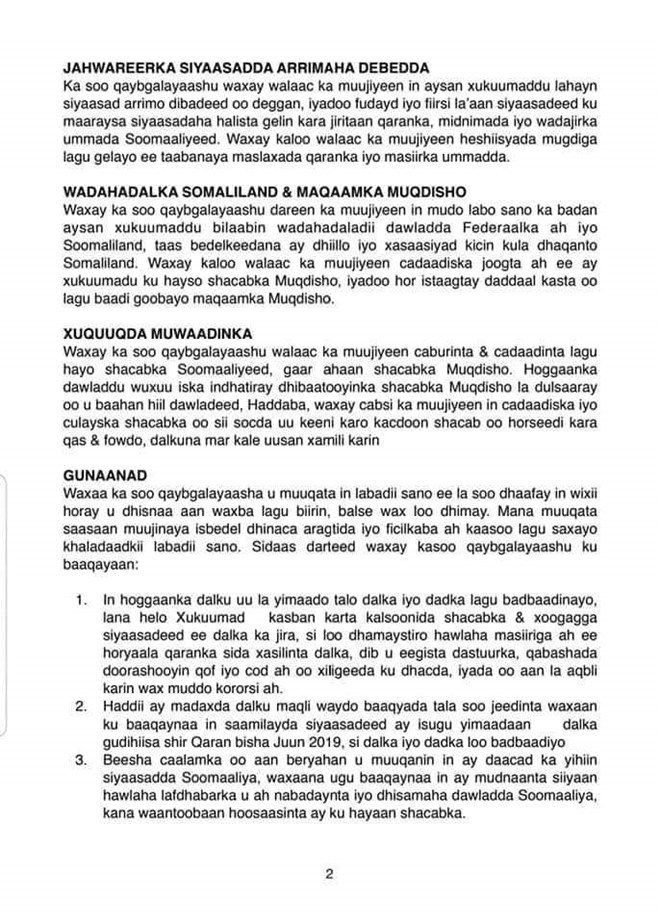 newsinside Xildhibaanada ka tirsan Labada Aqal, Siyaasiyinta, Madaxda Xisbiyada Ileys iyo Wadajir ayaa waxaa ay shirkooda ka soo saareen Bayaan ka kooban dhowr qodob,kuwaas oo intooda badan eedeyn loogu jeediyey Mas’uuliyiin ugu sareysa dowladda Soomaaliya.