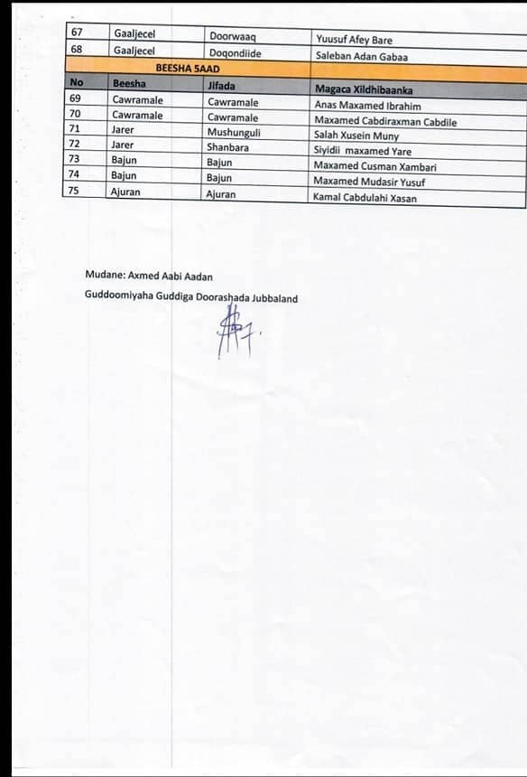 newsinside Liiskan ay soo saareen ee Xildhibaanada ayaa gaaraya 75 Xildhibaan waxaana ka muuqda magacyada iyo beelaha ay ka soo jeedaan, taasoo ka duwan liiskii xalay soo baxay oo kaliya ku qornaa magaca xubnaha cusub ee Baarlamaanka labaad ee Jubbaland.