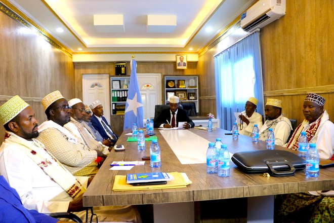 Jimco, Abril 24, 2020 (HOL) - Wasiirka wasaaradda Aw-qaafta iyo arrimaha diinta Soomaaliya Shiikh Nuur Maxamed Xasan, wasiir ku xigeenka wasaaraddaasi iyo qaar kamid ah culimada Magaalada Muqdisho  ayaa waxey maanta yeesheen kulan looga hadlayay sidii wadaaddada ay qeyb uga noqon lahaayeen la dagaallanka xanuunka COVID-19 oo ay dowladda hadda dagaal kula jirto.