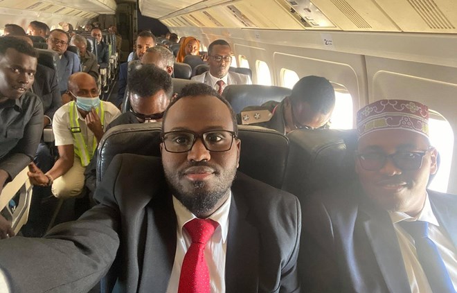 Wasiirka amniga Hirshabeelle Maxamed Cabdiraxmaan Kheyre oo ka mid ahaa wafdiga guddoomiyaha Baralamaanka Hirshabeelle oo qoraal dheer soo dhigay bartiisa Facebooka waxa uu sheegay iney si nabad ah ku gaareen garoonka Aadan Cadde ee magaalada Muqdisho.