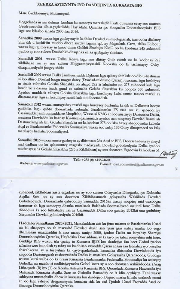 Guddigaan ayaa waxay horay usoo bandhigeen matalaadda siyaasadeed iyo kuraasta Gobolka Banaadir uu yeelanayo, iyagoo u qoondeeyay 7 kursi, hase-ahaatee waxaa jiray dhaliillo loo soo jeediyay aragtidaasi, taas oo markii dembe socon waaysay, waxaana ay u muuqatay aragtidii guddiga mid meel martay.