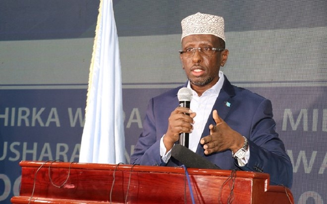 Khamiis, November, 26, 2020 (HOL) - Madaxweynihii hore ee Soomaaliya, Sheikh Shariif kana mid ah murashixiinta u sharraxan xilka madaxweynaha Soomaaliya ayaa maanta isagoo ka hadlayay shirka murashixiinta, wuxuu madaxweyne Farmaajo ugu baaqay inuu doorashada ka dhigo mid dhexda u taala murashixiinta oo idil.